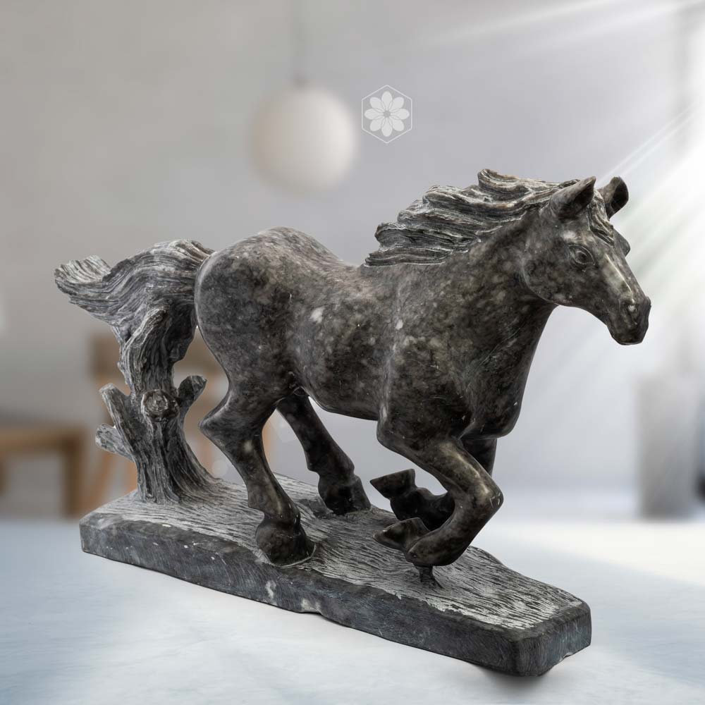 Caballo salvaje. El arte del tallado en piedra de Huamanga por el destacado artesano Raúl Laura Beltrán. La piedra de Huamanga es un tipo de alabastro (sulfato de cal) utilizada para elaborar piezas únicas con un acabado de calidad.