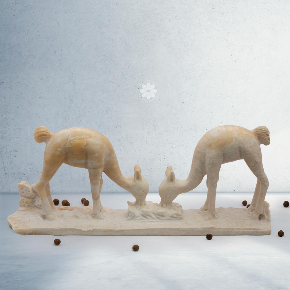 Vicuña de alabastro. El arte del tallado en piedra de Huamanga por el destacado artesano Raúl Laura Beltrán. La piedra de Huamanga es un tipo de alabastro (sulfato de cal) utilizada para elaborar piezas únicas con un acabado de calidad.
